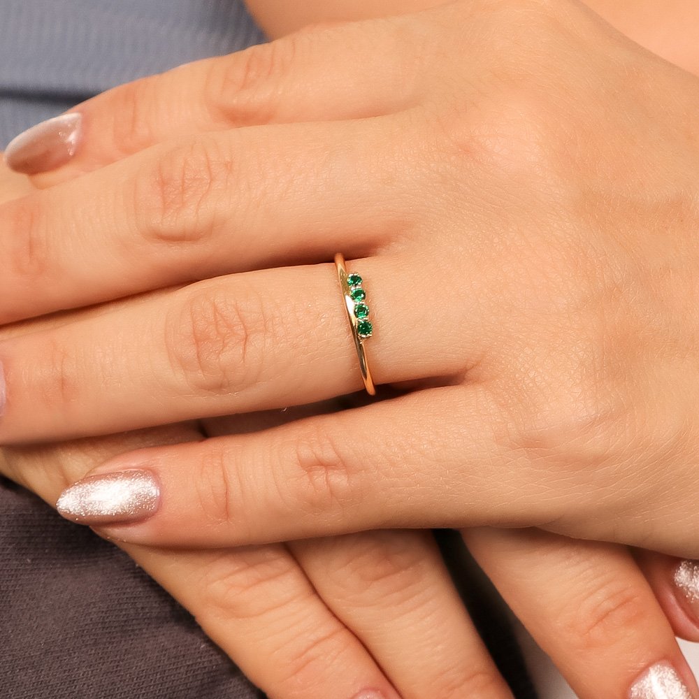 Anillo Cintillo Con Tres Piedras Verdes. Lujo y Elegancia en Cada Detalle