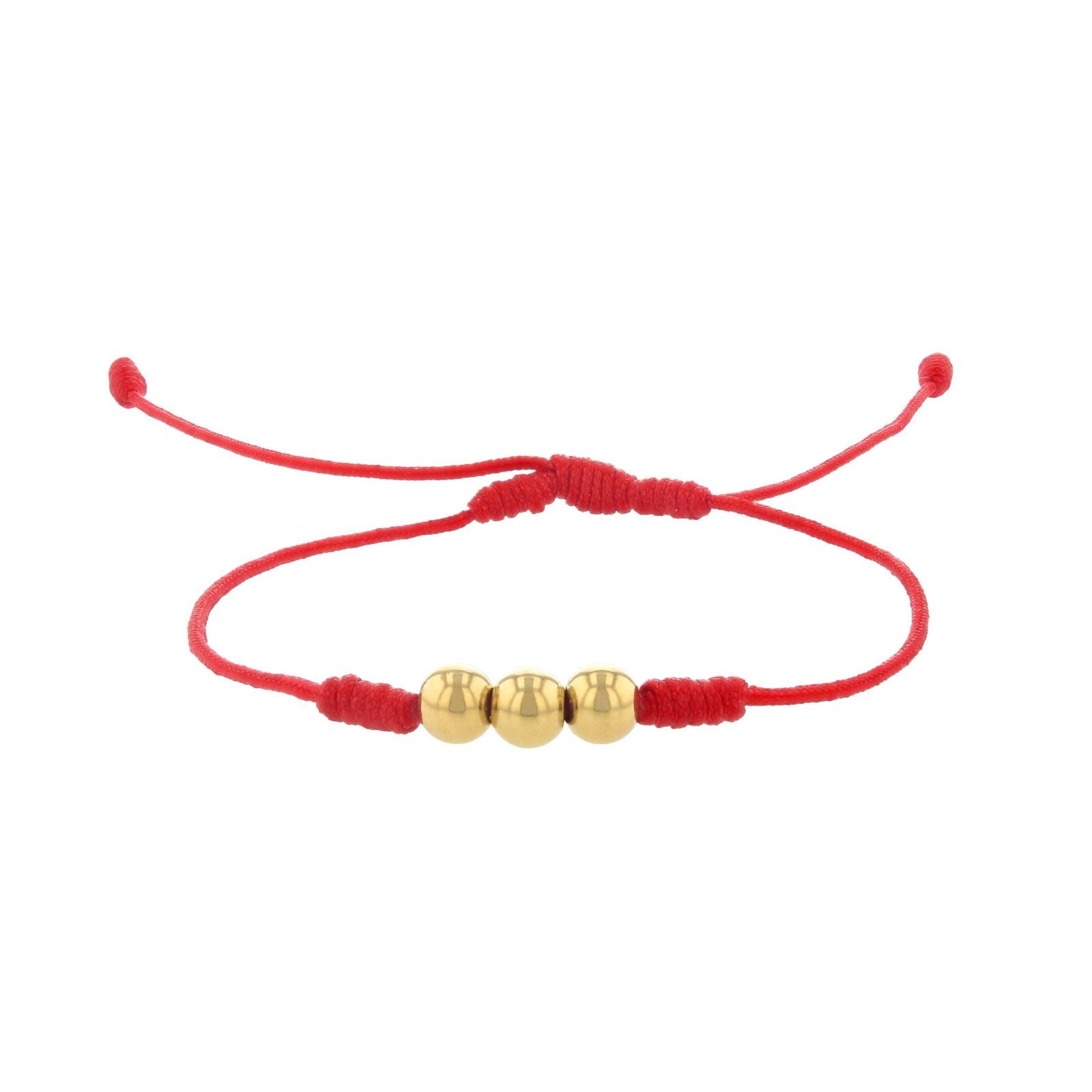 Pulsera Con Hilo Rojo Y Con 3 Esferas De Oro 4Mm 18K