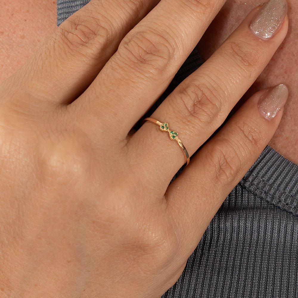 Anillo De Oro 18k Cintillo Doble Corazón Con Piedras Verdes. Lujo y Elegancia en Cada Detalle